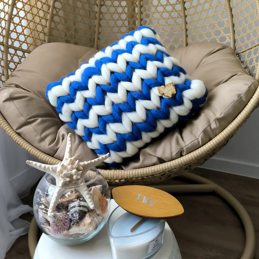 Dekorativní polštář pletený z ovčí vlny dodá Vašemu interiéru hřejivou atmosféru hygge.