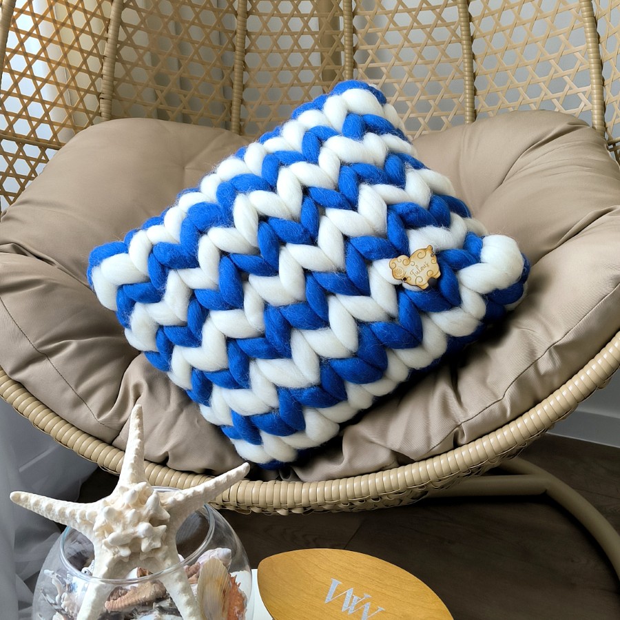 Dekorativní polštář pletený z ovčí vlny dodá Vašemu interiéru hřejivou atmosféru hygge.