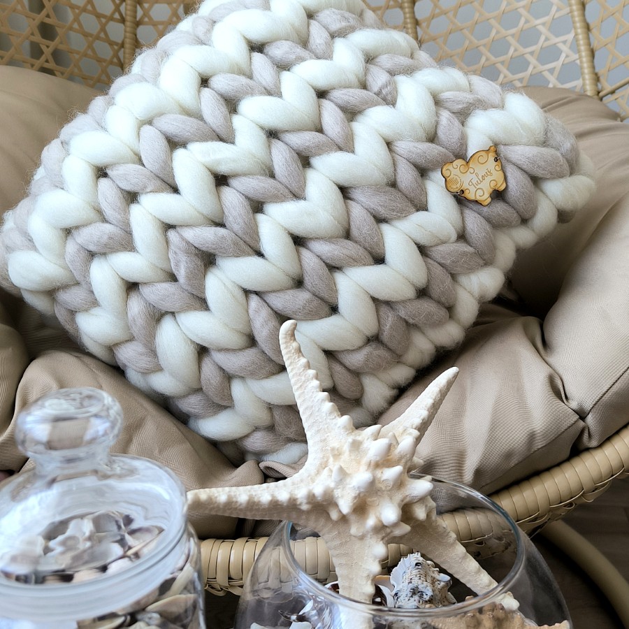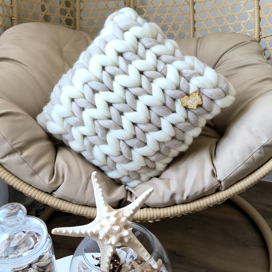 Dekorativní polštář pletený z ovčí vlny dodá Vašemu interiéru hřejivou atmosféru hygge.
