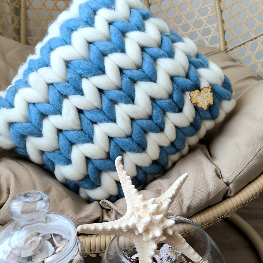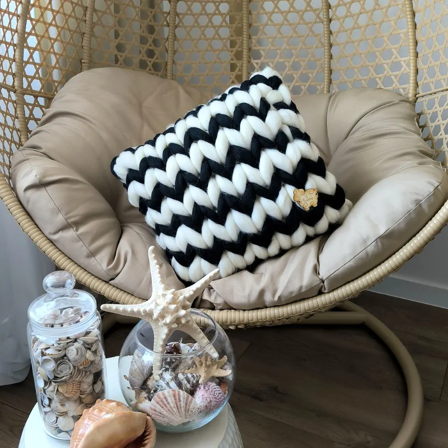 Dekorativní polštář pletený z ovčí vlny dodá Vašemu interiéru hřejivou atmosféru hygge.
